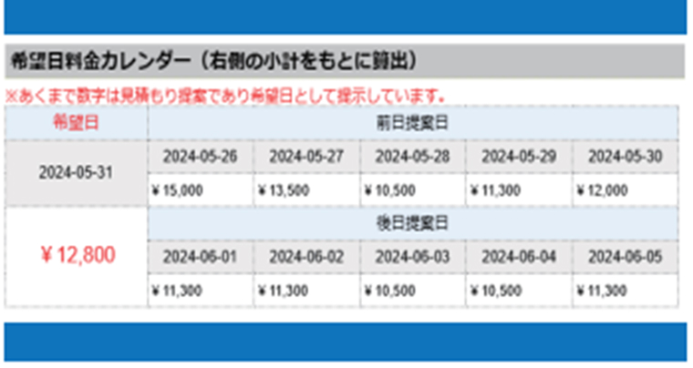 希望日の前後1週間の金額を提案